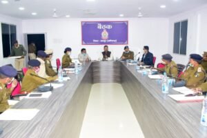 मुकेश अग्रवाल , हिंद शिखर न्यूज पत्थलगांवआज सरगुजा रेंज के नवपदस्थ पुलिस महानिरीक्षक महोदय आर0पी0 साय (भा.पु.से.) द्वारा -जशपुर भ्रमण के दौरान पुलिस अधीक्षक कार्यालय में बैठक ली गई जिसमें जिले के राजपत्रित पुलिस अधिकारियों, थाना/चौकी प्रभारियों को आम जनता से मधुर व्यवहार करने एवं फरयादी की रिपोर्ट पर तत्काल कार्यवाही करने सहित लंबित अपराधों, महिला एवं बच्चों से संबंधित अपराधों पर त्वरित कार्यवाही करने के निर्देश दिये गये। इसके अतिरिक्त निगरानी एवं गुण्डा बदमाशों की लगातार चेकिंग करने, समंस/वारंट की अधिक से अधिक तामीली करने, लगातार गश्त एवं पेट्रोलिंग करने के दौरान राजस्व अधिकारियों के साथ धान खरीदी केन्द्रों का भ्रमण करने के भी निर्देश दिये गये। बालक-बालिकाओं से संबंधित प्रकरणों में त्वरित एवं सख्त कार्यवाही करने तथा प्रत्येक थाना क्षेत्र के विभिन्न ग्रामों में चलित थाना लगाये जाने का निर्देश पुलिस महानिरीक्षक महोदय के द्वारा दिया गया। चलित थाना में विशेष तौर पर ग्रामीणों को ठगी से बचने के संबंध में बताये जाने के निर्देश दिये गये।