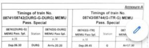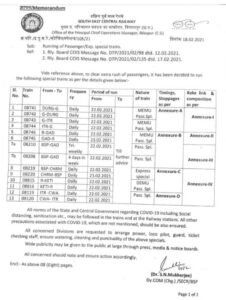 विनोद शुक्ला हिंद शिखर न्यूज़ कोरबा । रेलवे ने बिलासपुर-गेवरा रोड पैसेंजर और गेवरा रोड रायपुर मेमू सहित 13 ट्रेनों को 22 फरवरी से चलाने की अनुमति दे दी है । देखे ट्रेनों की सूची-