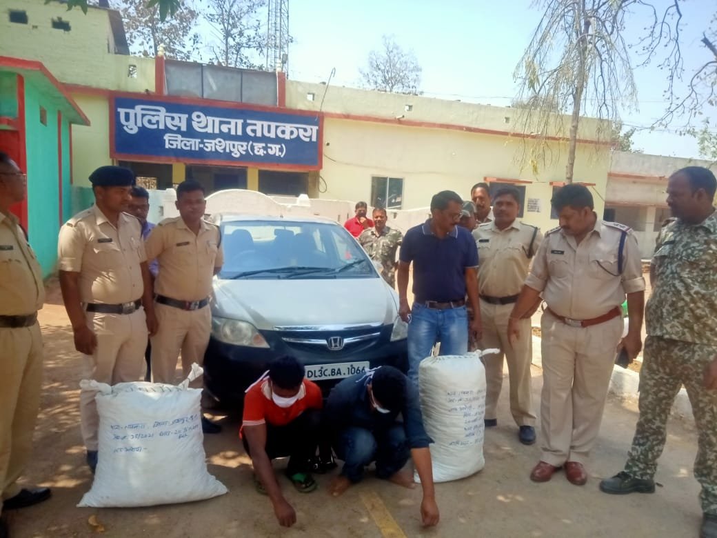 मुकेश अग्रवाल हिंद शिखर न्यूज पत्थलगांव । हमेशा से ही चर्चित गांजा तस्करों के लिए तपकरा मार्ग सबसे सुरक्षित मार्ग माना जाता है किंतु तपकरा पुलिस की सक्रियता से उड़ीसा और झारखण्ड की सीमा से लगे जशपुर जिले के तपकरा से आ रही है।तपकरा थाना की पूलिस ने उड़ीसा से गांजा खरीदकर यूपी में खपाने वाले 2 गांजा तस्करों को हिरासत मे लिया है।तस्करों से पूलिस चारपहिया वाहन सहित लाखों रुपये का गांजा भी बरामद किया है । दोनो आरोपी उत्तर प्रदेश के बलिया के रहने वाले बताए जा रहे हैं।एक का नाम जयप्रकाश यादव तो दूसरे का नाम कृष्णा है । इनके पास से बरामद हुई चारपहिया वाहन में दिल्ली का नम्बर है।तपकरा पूलिस आरोपियों से पूछ ताछ कर रही है ।पूछ ताछ के बाद इस मामले में कुछ और भी खुलासे हो सकते हैं ।यह बताना जरूरी है कि उड़ीसा के सुंदर गढ़ जिले की सीमा से लगे लावकेरा फारेस्ट बैरियर के पास कई बार तपकरा पूलिस को गांजे के बड़े बड़े खेप पकड़ने में सफलता मिल चुकी है ।इस बार का खेप भी यही से बरामद हुआ है।