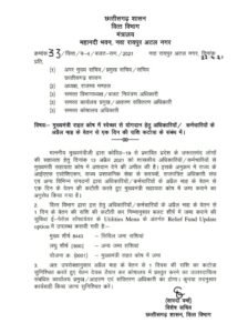 परिपत्र में कहा गया है कि मुख्यमंत्री द्वारा कोविड-19 से प्रभावित प्रदेश के जरूरतमंद लोगों की सहायता के लिए 13 अप्रैल 2021 को शासकीय अधिकारियों-कर्मचारियों से मुख्यमंत्री सहायता कोष अंश दान देने की अपील की है। इसके अनुक्रम में राज्य के आईएएस एसोसिएशन, राज्य प्रशासनिक सेवा के सदस्यों, राजपत्रित अधिकारी संघ एवं अन्य विभिन्न संगठनों द्वारा अधिकारियों-कर्मचारियों के अप्रैल माह के वेतन से एक दिन के वतेन की कटौती करते हुए मुख्यमंत्री सहायता कोष में जमा कराने का अनुरोध किया गया है।