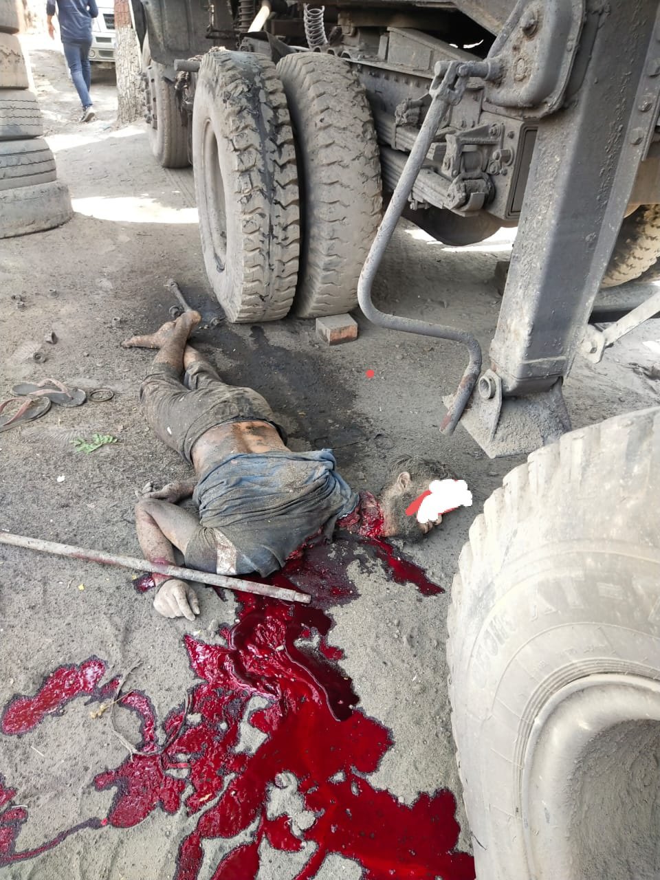 पंचर वाला ट्रेलर के टायर में भर रहा था हवा ..एयर टैंक फटा.. हुआ जबरदस्त विस्फोट ..सिर धड़ से अलग होने से दर्दनाक मौत
