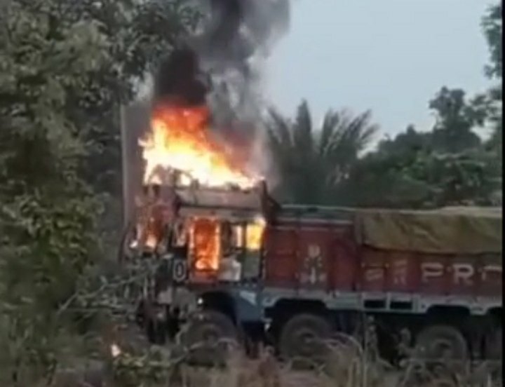 जशपुर : चलती ट्रक में लगी आग.. देखते ही देखते धू-धू करके जल उठा ट्रक : देखिए वीडियो
