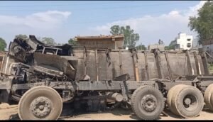 निर्माणाधीन एनएच में चलती ट्रक के चेचिस से बॉडी अलग होकर सड़क पर पलटा..बड़ा हादसा टला