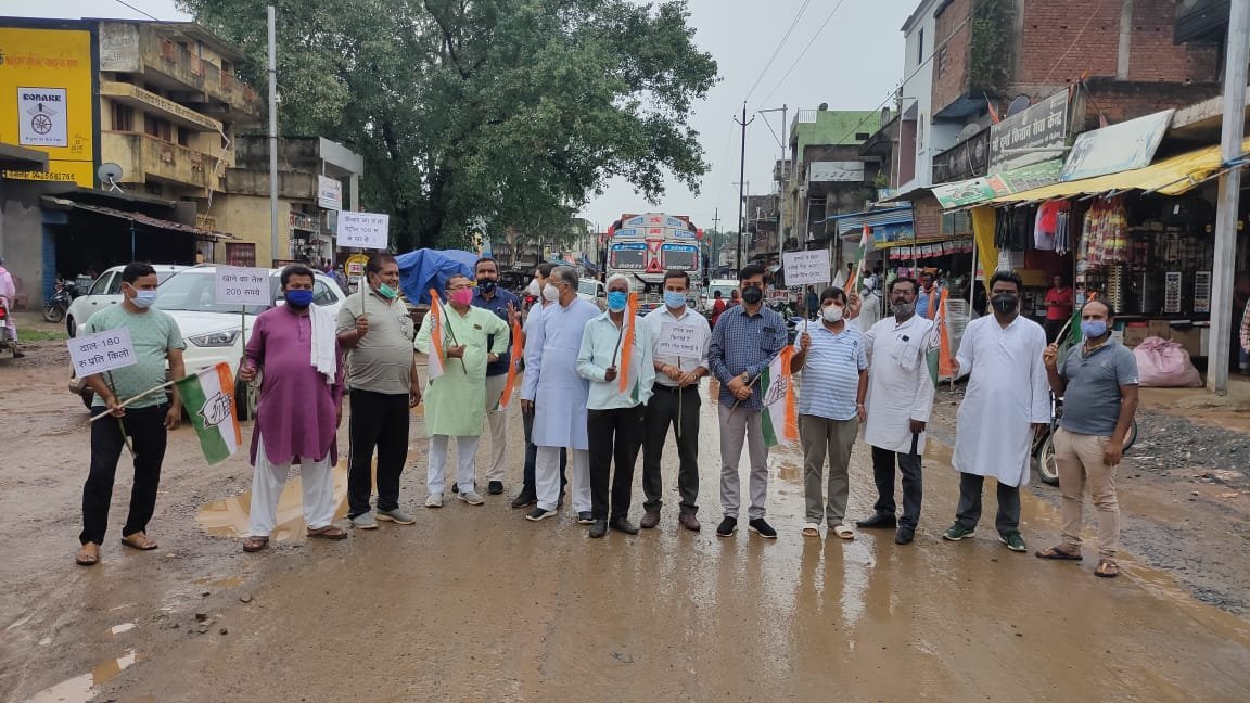 लखनपुर:- लखनपुर ब्लॉक कांग्रेस कमेटी ने प्रदेश कांग्रेस कमेटी के निर्देश पर सांकेतिक चक्काजाम कर विरोध प्रदर्शन किया। यह चक्का जाम देश मे बढ़ती महंगाई को लेकर किया। केंद्र की मोदी सरकार की गलत नीतियों के कारण देश मे पेट्रोलियम उत्पादों सहित खाद्य सामग्री और अन्य आवश्यक वस्तुओं के मूल्य में बेतहाशा वृद्धि हो रही है।महंगाई के खिलाफ कांग्रेस सड़क पर उतर आई है। प्रदेश कांग्रेस कमेटी अध्यक्ष मोहन मरकाम के निर्देश पर लखनपुर कांग्रेस कमेटी के पदाधिकारियों और कार्यकर्ताओं ने दोपहर12 बजे सांकेतिक चक्काजाम किया। देश भर में बढ़ती महंगाई को लेकर छत्तीसगढ़ कांग्रेस विरोध प्रदर्शन कर रही है।धरना प्रदर्शन में प्रदेश कांग्रेस प्रतिनिधि विक्रमादित्य सिंह देव, लखनपुर जप उपाध्यक्ष अमित सिंह देव, लखनपुर ब्लॉक कांग्रेस कमेटी अध्यक्ष कृपाशंकर गुप्ता, aipc संभाग समन्वयक रणविजय सिंह देव, युवा कांग्रेस ब्लॉक अध्यक्ष वीरेंद्र सिंह देव, वरिष्ठ अधिवक्ता नरेंद्र पांडेय, एल्डरमैन सराफत अली , दिनेश तायल, शैलेंद्र गुप्ता,गप्पू खान, युवा कांग्रेस सोसल मीडिया ब्लॉक संयोजक मक़सूद हुसैन, कांग्रेस पार्षद अमित बारी, मोजिब खान,हफीज खान, प्रकाश ठाकुर, संतोष यादव सहित कांग्रेस कार्यकर्ता उपस्थित रहे।