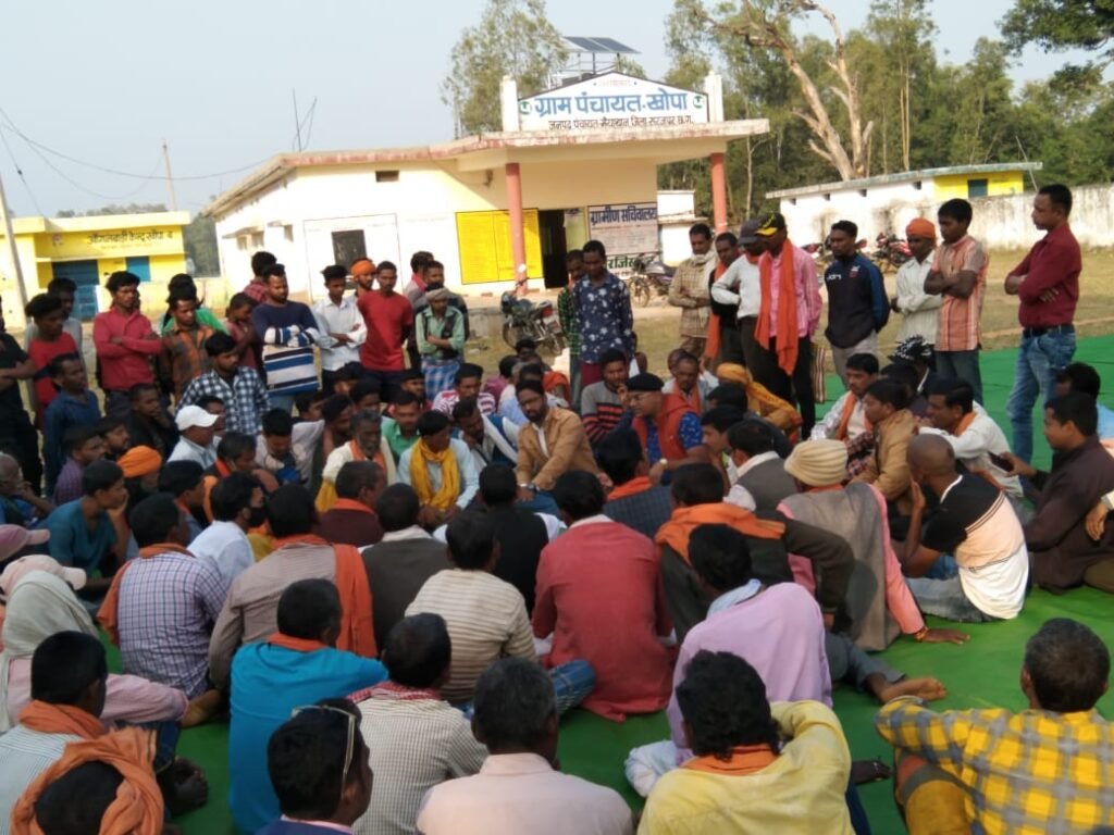 खोपा मे स्थित रेड़ नदी से अवैध तरीके से रेत माफियाओं द्वारा रेत निकालने के विरुद्ध आमसभा