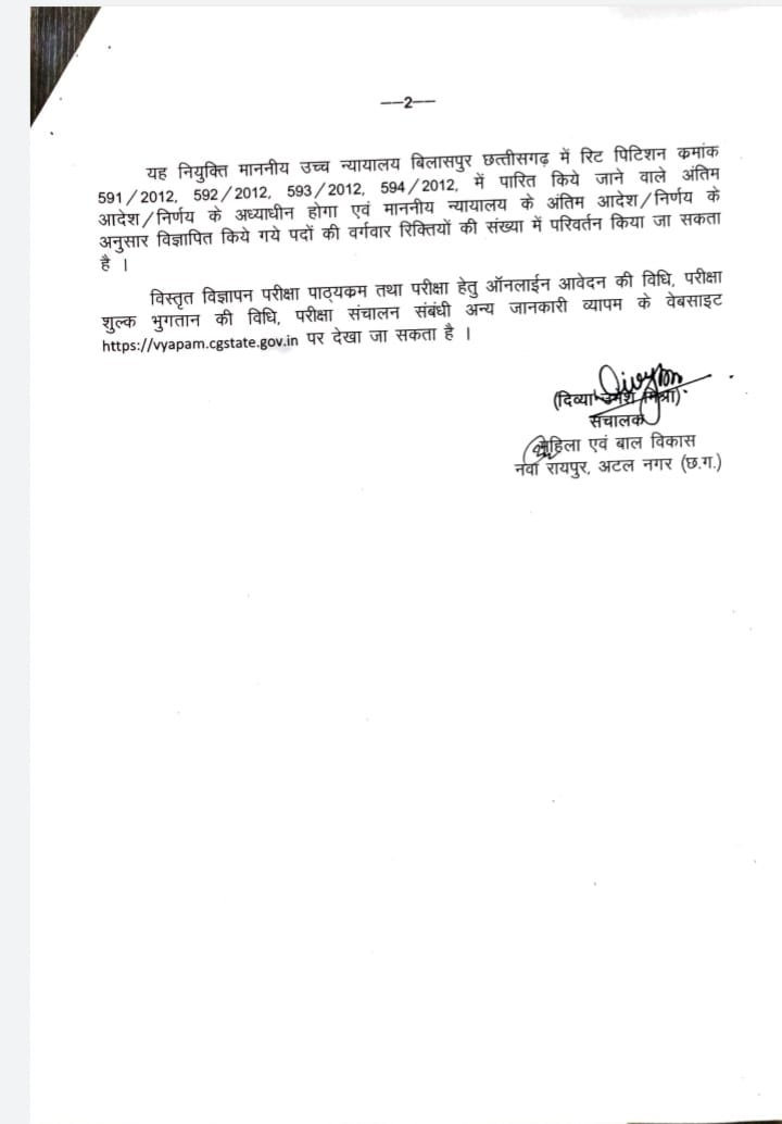 महिला एवं बाल विकास विभाग अंतर्गत सुपरवाइजर के 200 पदों पर नियुक्ति के लिए विभाग द्वारा विज्ञापन जारी किया गया है उक्त पदों पर भर्ती के लिए व्यापम द्वारा भर्ती परीक्षा आयोजित की जाएगी. देखेंं विस्तृत विवरण