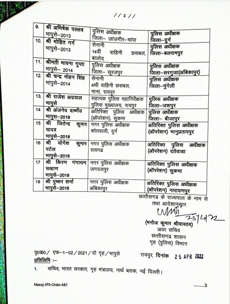 सरगुजा ,सूरजपुर ,बलरामपुर ,जशपुर के पुलिस अधीक्षको का तबादला.. सूरजपुर एसपी भावना गुप्ता होगींं सरगुजा जिले की पुलिस अधीक्षक