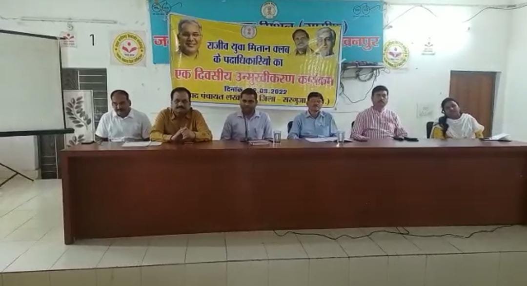 लखनपुर जनपद कार्यालय के सभा कक्ष में 22 सितंबर दिन गुरुवार को सुबह 11:00 बजे सरगुजा अपर कलेक्टर श्री ध्रुव खेल अधिकारी देवेंद्र सिन्हा के द्वारा लखनपुर विकासखंड के 74 ग्राम पंचायतों के राजीव युवा मितान क्लब के पदाधिकारियों को एक दिवसीय उन्मुखीकरण प्रशिक्षण दिया गया इस प्रशिक्षण में राजीव युवा मितान क्लब के पदाधिकारियों को खेल, सामाजिक ,सांस्कृतिक गतिविधियों तथा उनके कार्यों के दायित्वयो आदि पर विस्तार से प्रकाश डाला गया। साथ ही शासन की योजनाओं का प्रचार प्रसार बेसहारा व वृद्ध जनों का सहयोग राशन कार्ड स्वास्थ्य कार्ड बनवाने बैंक खाता खुलवाने सहयोग करने आदि के संबंध में विस्तार से बताया गया। इस दौरान जनपद उपाध्यक्ष अमित सिंह देव, लखनपुर तहसीलदार श्रीमती गरिमा ठाकुर ,मुख्य कार्यपालन अधिकारी वेद प्रकाश पांडे, कार्यक्रम अधिकारी अभिषेक मिंज, सत्येंद्र राय सहित राजीव यूवा मितान क्लब के 74 ग्रामों के अध्यक्ष उपाध्यक्ष हुआ कोषाध्यक्ष मौजूद रहे।