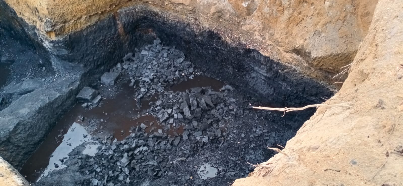 वन भूमि क्षेत्र में तस्कर गड्ढा खोदकर निकाल रहे अवैध कोयला