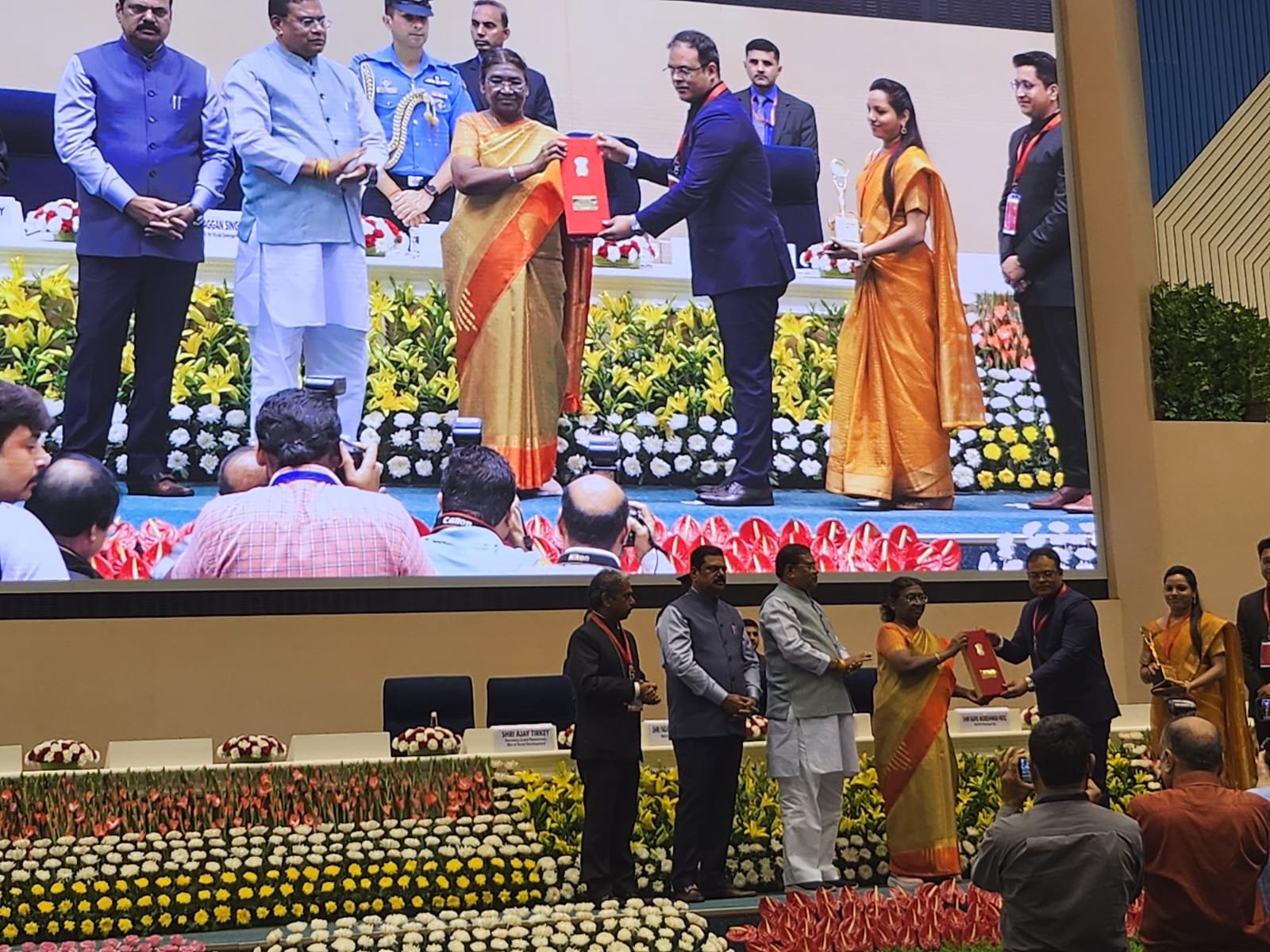 विज्ञान भवन नई दिल्ली में राष्ट्रपति के हाथों सरगुजा कलेक्टर कुन्दन कुमार ने यह भूमि सम्मान 2023 प्लेटिनम अवार्ड प्राप्त किया। इनके साथ अधीक्षक, भूअभिलेख उषा नेताम तथा सब-रजिस्ट्रार सिद्धार्थ शंकर मिश्रा भी उपस्थित रहे। राष्ट्रपति द्वारा देश में 9 राज्य के 75 जिलों को भू-अभिलेखों के आधुनिकीकरण, ग्राम नक़्शों के डिजिटलाइज़ेशन, अभिलेख़ागार के मार्डनाइजेशन और लैंड रिकॉर्ड्स के क्षेत्र में किए गए सराहनीय कार्यों के लिए “भूमि सम्मान प्लैटिनम अवार्ड” से सम्मानित किया गया है।