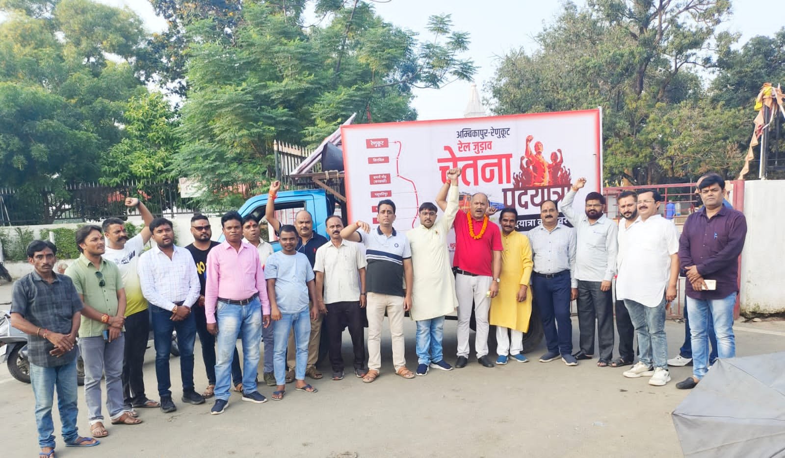 सरगुजा की आराध्य मां महामाया से आशीर्वाद ले रेणुकूट के लिए रवाना हुए रेल जुड़ाव चेतना पदयात्रा के पदयात्री