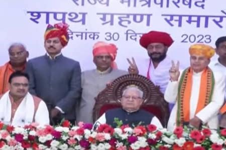 लंबी प्रतीक्षा के बाद आखिरकार राजस्थान में भजनलाल शर्मा के मंत्रिमंडल का विस्तार हो गया है। राजभवन में हुए शपथ ग्रहण समारोह में राज्यपाल कलराज मिश्रा ने 22 विधायकों को मंत्री पद की शपथ दिलाई। इसमें 12 ने विधायकों ने कैबिनेट मंत्री, पांच ने राज्य मंत्री (स्वतंत्र प्रभार) और पांच ने राज्य मंत्री के तौर पर शपथ ली। बताया जा रहा शपथ ग्रहण समारोह में पूर्व मुख्यमंत्री वसुंधरा राजे सिंधिया भी नहीं पहुंची।
