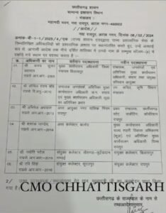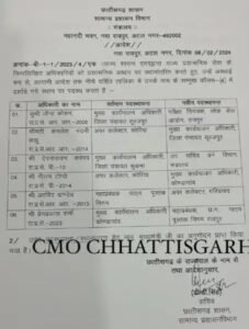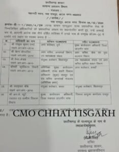 छत्तीसगढ़ में राज्य प्रशासनिक सेवा के 18 अधिकारियों का ट्रांसफर किया गया है जारी आदेश के अनुसार