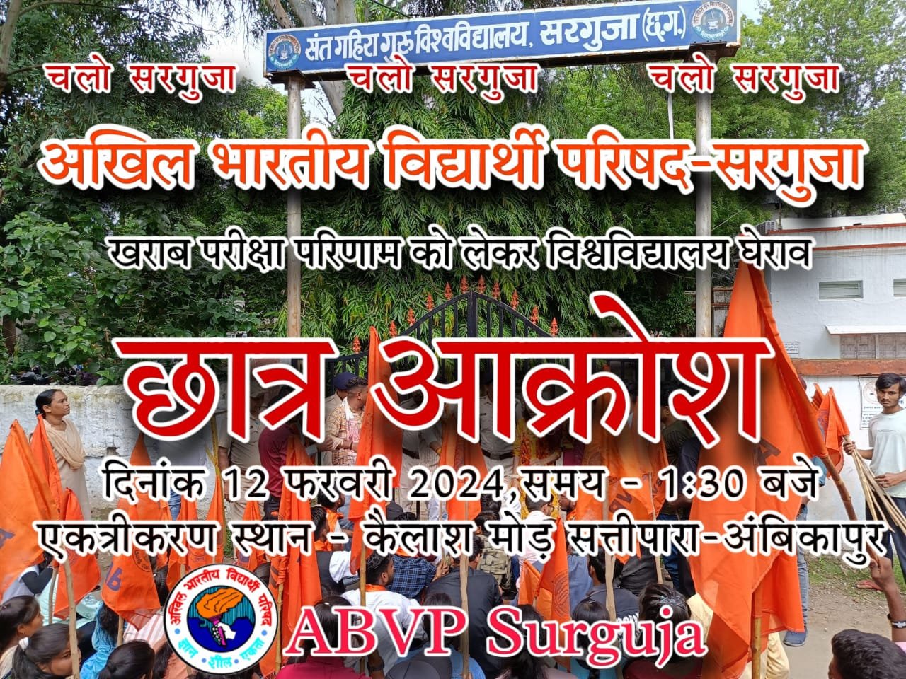 खराब परीक्षा परिणाम को लेकर अभाविप के नेतृत्व में सरगुजा संभाग के 6 जिले के विद्यार्थी करेंगे विश्वविद्यालय का घेराव