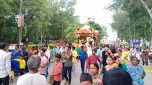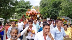 अंबिकापुर । मौसी गुंडिया के घर नौ दिनों तक मेहमानी व आवाभगत के बाद महाप्रभु जगन्नाथ स्वामी आज बहन सुभद्रा, भाई बलभद्र व सुदर्शन के साथ फुलों से सुसज्जित आर्कषक रथ में सवार हो वापस घर (जगन्नाथ मंदिर) लौटे. महाप्रभु जगन्नाथ स्वामी जी के रथ को खिंचने श्रद्धालुओं में होड़ मची रही. ढोल, मंजीरे, डफली, झाल की झुड के साथ भजन कीर्तन करते श्रद्धालुओं का सैलाब भक्ति भाव में विभोर हो रथ के साथ-साथ चलता रहा. घर पहुंचने के बाद महाप्रभु ने बद्धालुओं को पुनः दर्शन दिये. इस अवसर पर उड़ीसा से आए पुजारी संभूनाथ पंडा के सानिध्य में आलौकिक श्रृंगार, भजन, पूजन, महाआरती के साथ प्रसाद का वितरण किया गया. आयोजन को लेकर भक्ति और उल्लास का माहौल रहा. विदित हो कि देवस्नान के बाद महाप्रभु जगन्नाथ स्वामी बुखार से पीड़ित हो गये थे और घर (मंदिर) का पट बंद कर पुजारी के द्वारा उनका विविध औषधियों से उपचार किया जा रहा था. 15 दिनों के उपचार के बाद महाप्रभु स्वस्थ हुए और नेत्रोत्सव, नौयौवन दर्शन के साथ श्रद्धालुओं को दर्शन दिये और भाई, बहन व सुदर्शन के साथ रथ में सवार हो मौसी के घर नौ दिनों तक मेहमानी पर गये थे. मौसी के घर आवाभगत, दर्शन के साथ हर रोज आरती के बाद भंडारा प्रसाद की वितरण भी किया जा रहा था. नौ दिनों के मेहमानी के बाद महाप्रभु भाई, बहन व सुदर्शन के साथ आज वापस घर लौटे, इस दौरान उत्कल समाज के अलावा विभिन्न समाज के श्रद्धालु बड़ी संख्या में उपस्थित रहे.