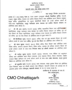 रायपुर । छत्तीसगढ़ शासन द्वारा भारतीय प्रशासनिक सेवा के अधिकारियों की नवीन पदस्थापना सूची जारी की गई है