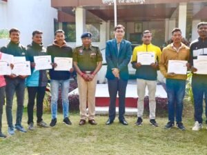 अंबिकापुर । सरगुजा जिले में आरक्षक संवर्ग भर्ती प्रक्रिया वर्ष 2023-24 के अंतर्गत चयनित 10 अभ्यर्थियों ने आज जिला पुलिस बल में अपनी आमद दर्ज कराई। इस अवसर पर पुलिस महानिरीक्षक सरगुजा रेंज, दीपक कुमार झा (IPS) एवं वरिष्ठ पुलिस अधीक्षक सरगुजा, राजेश अग्रवाल (IPS) द्वारा सभी चयनितों को नियुक्ति आदेश एवं प्रमाण पत्र सौंपे गए। अधिकारियों ने सभी नव-नियुक्त आरक्षकों को जिला पुलिस बल में अपनी सेवाएं शुरू करने के लिए उज्ज्वल भविष्य की शुभकामनाएं दीं।