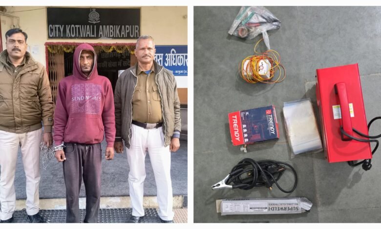 अम्बिकापुर। शहर के सदर रोड स्थित जगदंबा आभूषण भंडार में बुर्का पहनकर चोरी का प्रयास करने वाले शातिर आरोपी को पुलिस ने गिरफ्तार कर लिया है। पकड़े गए आरोपी ने अपनी पहचान छिपाने के लिए महिला वेशभूषा (बुर्का) का सहारा लिया था और दुकान में कटर व वेल्डिंग मशीन के जरिए बड़ी चोरी की योजना बनाई थी।