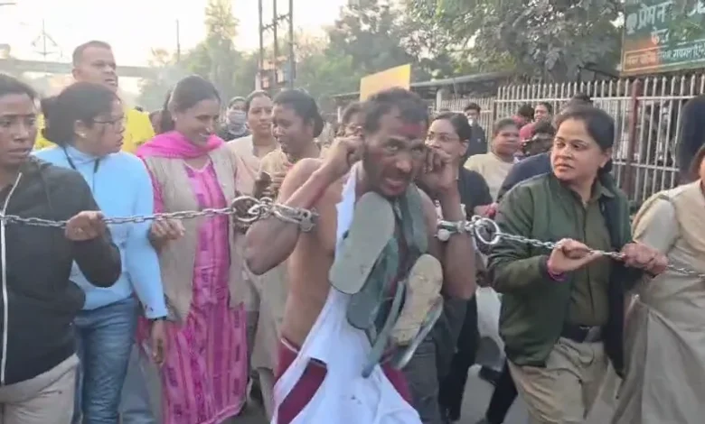 महिला पुलिसकर्मी से मारपीट और कपड़े फाड़ने वाले आरोपी का महिला पुलिसकर्मियों ने ही निकाला जुलूस; चेहरे पर लिपस्टिक, हाथों में चूड़ियाँ और जूतों की माला पहनाकर सड़कों पर घुमाया…