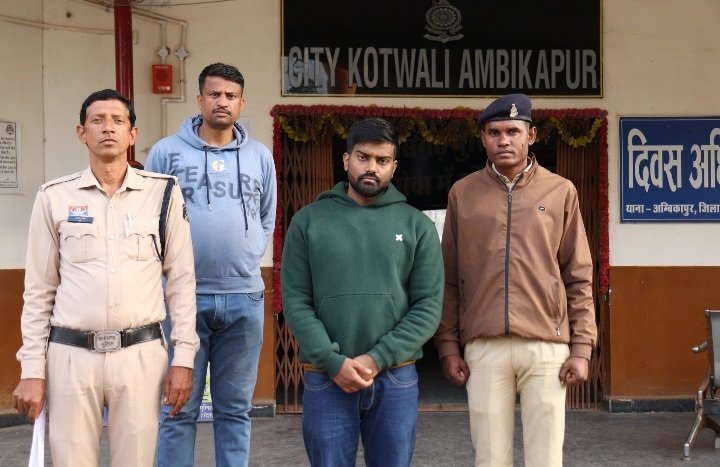 सट्टा खिलवाने का कुख्यात आरोपी आयुष सिन्हा उर्फ दीप सिन्हा पिछले लगभग 1 साल से फरार चल रहा था, जिसके संबंध में माननीय न्यायालय द्वारा आरोपी की उपस्थिति हेतु उद्घोषणा भी जारी की गई थी। इसके बावजूद आरोपी लगातार फरार चल रहा था। पुलिस टीम द्वारा फरार आरोपी की निरंतर पता-तलाश की जा रही थी। इसी क्रम में सूचना प्राप्त हुई कि आरोपी पुणे (महाराष्ट्र) में छिपा हुआ है। नगर पुलिस अधीक्षक के नेतृत्व में गठित टीम द्वारा त्वरित कार्यवाही करते हुए आरोपी आयुष उर्फ़ दीप सिन्हा आत्मज स्व. त्रिभुवन प्रसाद सिन्हा (उम्र 32 वर्ष), निवासी नेहरू वार्ड, शिव मंदिर के पास, थाना कोतवाली अम्बिकापुर को पुणे से गिरफ्तार किया गया। आरोपी का माननीय न्यायालय से ट्रांजिट रिमांड प्राप्त कर उसे थाना कोतवाली अम्बिकापुर लाया गया।