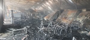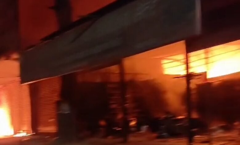 भीषण अग्निकांड: भोर में लपटों से घिरा बनारस चौक, दर्जनों ई-रिक्शा और फर्नीचर शोरूम स्वाहा।