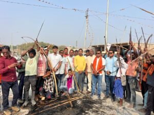 पंडो भूमि मामले पर पूर्व उपमुख्यमंत्री के बयान से आक्रोश, भाजपा अजजा मोर्चा के साथ पंडो समाज ने किया टी एस बाबा का पुतला दहन