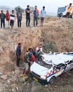 महेश यादव । जिले के बतौली थाना क्षेत्र अंतर्गत आने वाले नेशनल हाईवे 43 पर आज एक दर्दनाक सड़क हादसा घटित हुआ। मिली जानकारी के अनुसार एक तेज रफ्तार एम्बुलेंस अनियंत्रित होकर सड़क किनारे बने गहरे खेत में जाकर पलट गई। यह दुर्घटना इतनी भीषण थी कि वाहन के परखच्चे उड़ गए और एम्बुलेंस चालक वाहन के मलबे के बीच बुरी तरह से फंस गया। प्रत्यक्षदर्शियों ने बताया कि एम्बुलेंस की गति काफी अधिक थी जिसके कारण चालक ने अचानक वाहन पर से अपना नियंत्रण खो दिया और एम्बुलेंस सीधे सड़क से उतरकर खेत में जा गिरी।