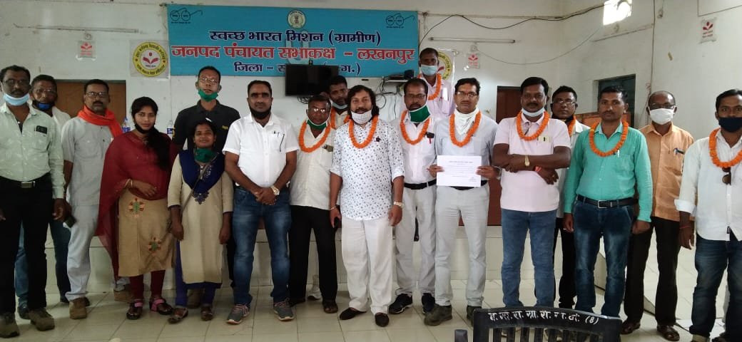 लखनपुर- विगत 15 जुलाई को जनपद कार्यालय के सभाकक्ष में ब्लॉक सचिव संघ के पदाधिकारियों के निर्वाचन कार्यवाही का खुमार छाया रहा विडंबना है कि कोरोनावायरस जैसी भयानक बीमारी के प्रति गम्भीर नज़र नही आना पंचायतवासियो के प्रति रक्षा के दायित्वों का ख्याल भी ना रहा यदि बात करें सचिव संघ पदाधिकारियों के चुनाव के दौरान सोशल डिस्टेंसिंग की खूब धज्जियां उड़ाई गई। जनपद कार्यालय सभाकक्ष में खुलेआम नियम कायदों की धज्जियां उड़ाते ग्राम सचिव नजर आए ग्राम पंचायतों में पंचायत वासियों के प्रति सुरक्षा की जिम्मेदारी जिस नजरिए से शासन प्रशासन ने उनके कंधों पर सौंपी है उसका पालन किस ढंग से निर्वहन कर रहे हैं संघ पदाधिकारी के चुनाव के मंजर में सामने आने के बाद सहज ही अनुमान लगाया जा सकता है। गौरतलब है कि सरगुजा जिले एवं लखनपुर ब्लॉक में लगातार कोरोना संक्रमित के मरीज मिलने के बावजूद पंचायत सचिवों के द्वारा सोशल डिस्टेंसिंग का गम्भीरता से पालन नहीं किया जाना समझ के परे है। शासन प्रशासन के द्वारा जिनके कंधों पर नियम कायदों को प्रचार प्रसार कर जागरूक करने का दायित्व सौंपा गया है उन्हीं के द्वारा खुलेआम उन नियमों की धज्जियां उड़ाई गई है। साथ ही पंचायत सचिव संघ की ताजपोशी में नवनिर्वाचित पदाधिकारी एवं अन्य सचिव खुशी के नशे में इतने डूबे हुए थे कि फेस मास्क को भी घंटी की तरह गले में लटकाए नजर आए।