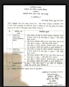 प्रदेश में कोविड-19 जांच के लिए दरों का निर्धारण, निजी अस्पताल एवं पैथोलॉजी लैब नहीं कर पाएंगे मनमानी..देखें आदेश