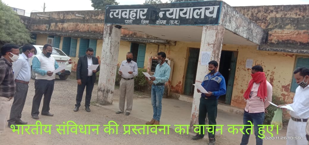 विनोद शुक्ला , हिंद शिखर न्यूज़ कोरबा। संविधान दिवस के अवसर पर पाली स्थित व्यवहार न्यायालय में व्यवहार न्यायाधीश/अध्यक्ष तालुक विधिक सेवा समिति पाली श्री भगवान दास पनिका के द्वारा राज्य विधिक सेवा प्राधिकरण एवम् ज़िला विधिक सेवा प्राधिकरण कोरबा के आदेशानुसार covid-19 की गाइड लाइन का पालन करते हुए प्रातः 11 बजे संविधान का प्रस्तावना का वाचन किया गया एवम् भारतीय संविधान की संवैधानिक मूल्यों एवम मूल सिद्धांतों के संबंध में वार्ता का आयोजन किया गया। इस अवसर पर उपस्थित जनों को केन्द्र सरकार एवम् राज्य सरकार की covid-19 के दिशा निर्देशों का पालन करने की समझाइश दी गई तथा मा. न्यायाधीश द्वारा संविधान के मूल कर्तव्यों एवम् अधिकार के बारे में बताया गया। इस अवसर पर पैनल अधिवक्ता, समस्त अधिवक्तागण, पक्षकार गण, न्यायिक कर्मचारी गण एवम् विधिक सेवा के कर्मचारी उपस्थित रहे।