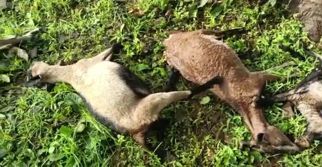 आकाशीय बिजली गिरने से एक साथ 7 बकरियों की मौत