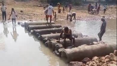 ग्राम पटकुर में ग्रामीणों ने श्रमदान कर नदी पर बनाया अस्थाई पुल
