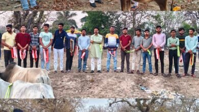 श्री राम युवा संघ (युवा तुहर संग) द्वारा गायों को सड़क दुर्घटनाओं से बचाने पहनाया गया रेडियम बेल्ट